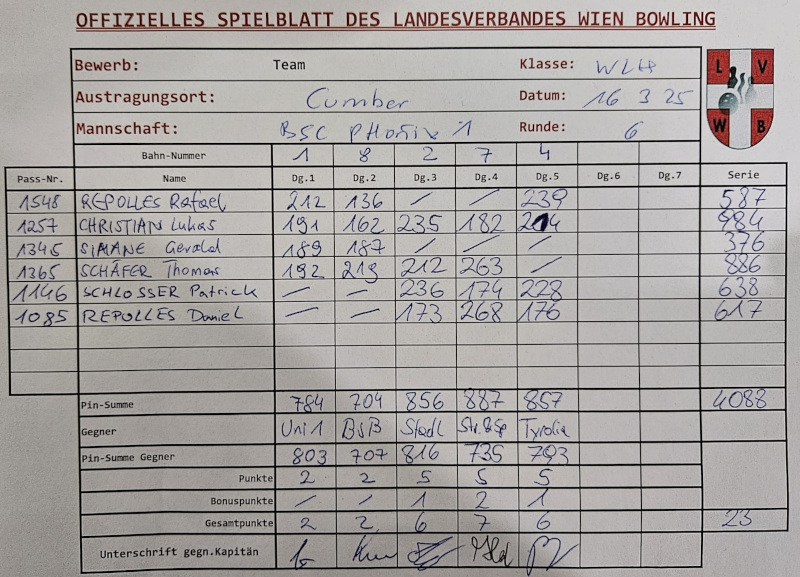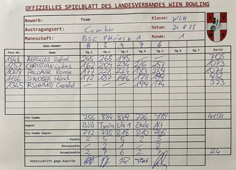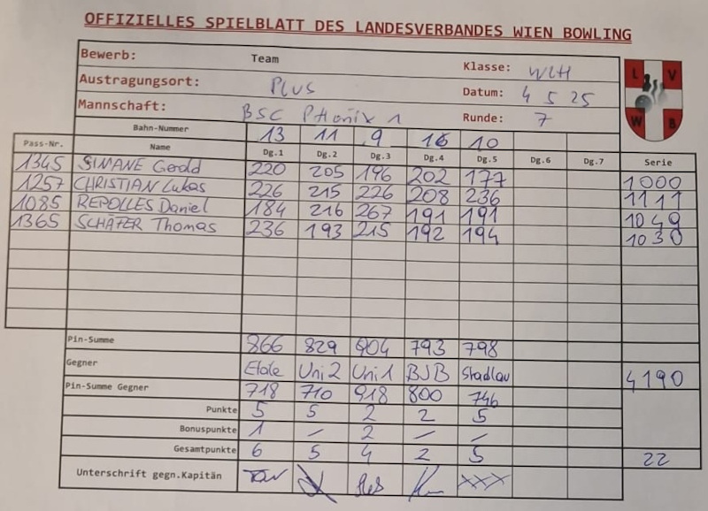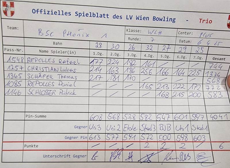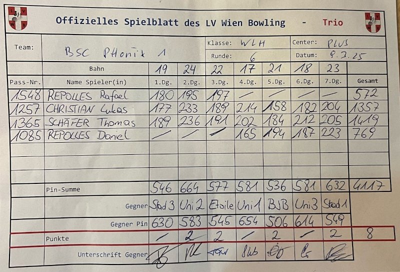 Wieder ein starke Runde im Team, auch noch einmal alles versucht, um den Tabellenführer abzufangen, aber im direkten Duell waren diesmal selbst 904 Pins! zu wenig für einen Sieg.