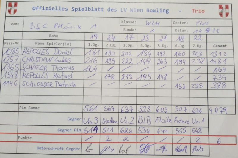 So ist es im Moment nur der 6. Tabellenplatz. Wie es geht, haben die Black Jack Bowlers gezeigt, die im Moment vor allen drei Unistahl Trios liegen.